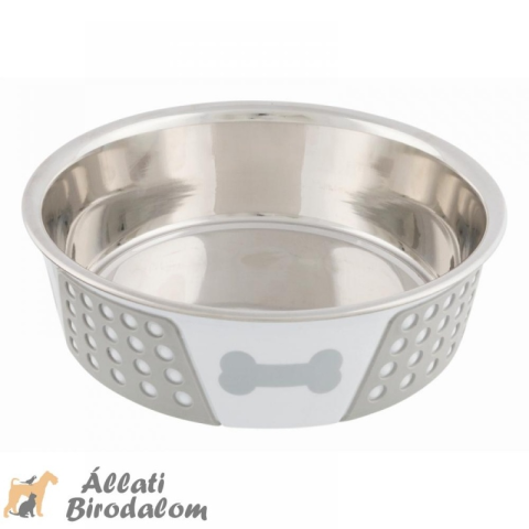 1 kép    Trixie Tál fém szilikon fedéssel 1,4l/21cm fehér/szürke