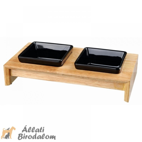Trixie Tál Kerámia Fa Állványon Kutyának 2x0.2l 28x5x15cm fekete kutyatál 1 kép
