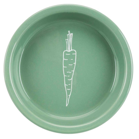 Mázzal bevont, így könnyen tisztítható és higiénikus. Lapos kialakítása miatt fiatal nyulaknak és tengerimalacoknak is ajánljuk. Több féle színben is kapható, belsejében répa motívummal.