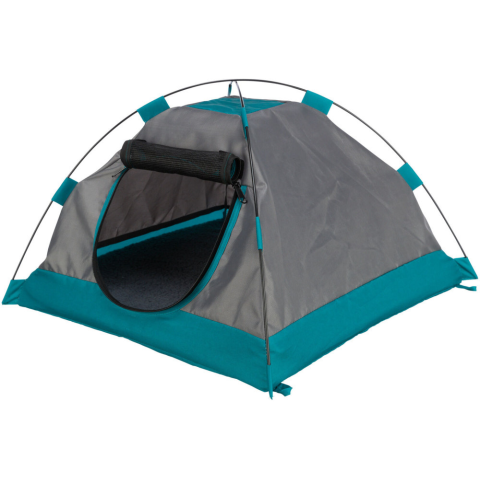 A Trixie Tent for Dogs szürke és petrolkék színű, 47x34x47 cm-es sátor ideális kisebb és közepes testű kutyák számára. Prémium minőségű, puha, párnázott belsővel, könnyen összeszerelhető és tisztítható, kényelmes búvóhelyet biztosít kedvencednek. Ez a