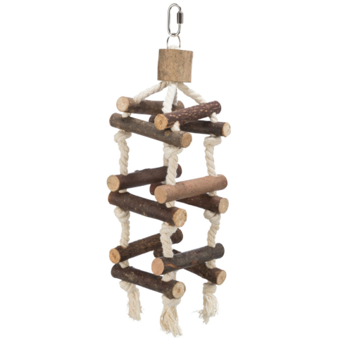 A díszmadarak szórakozását szolgáló, lenből készült mászótorony. Kreatív játék, mely fejleszti madaraid testi és szellemi aktivitását, miközben stílusos kiegészítője lehet otthonodnak. Ez a lenből készült mászótorony egyedülálló élményt kínál