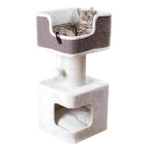 A Trixie Ava 86cm Álló kaparó egy különleges és kényelmes macskakaparó. Stabil, bármilyen helyre elhelyezhető (ideális sarokba) - oda is, ahol a macska szereti élesíteni a karmait. Megakadályozza, hogy a macska tönkretegye a bútorokat. A vakarónak van egy nagy kennele és egy búvóhelye. Mindkét pihenőhely puha párnákkal rendelkezik (kézzel mosható). Egy madzagra fűzött labda van a búvóhelyhez erősítve, ami játékra ösztönzi a macskákat. A kaparófa extra vastag