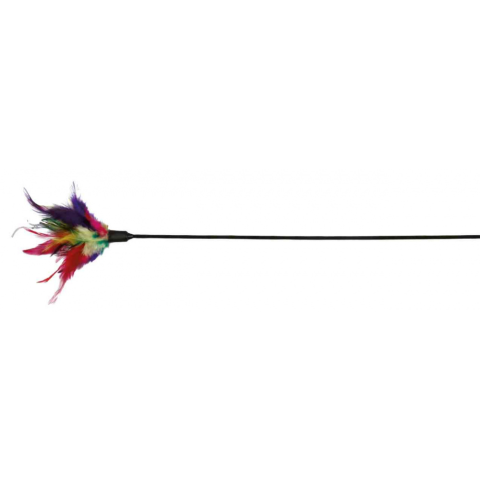 Szórakoztató, bot végére erősített tollas játék cicáknak, 50cm hosszú.