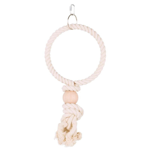 Kötél Gyűrű Fa Golyóval (ø 19 cm)  Trixie pamut karika fa golyóval papagájoknak. Kíváncsiságuk és a bátorságuk lehetőséget ad arra, hogy játékokkal szórakoztassuk el őket és magunkat.  tiszta pamut fa golyóval  Mivel biztosítsuk a folyamatos szellemi kihívást?  Időközönként adjuk új játékot a papagájainknak. Ne zsúfoljuk túl a röpdét vagy kalitkát játékkal. Ne hagyjunk a madár előtt ugyanazokat a játékokat, cserélgessük minél sűrűbben. A ját