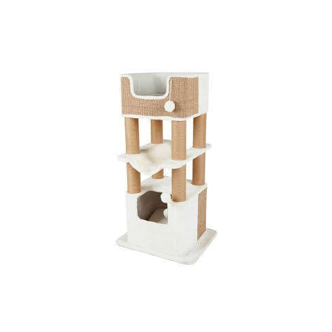 A Trixie Lucano macskabútor törtfehér színben nagyméretű alappal rendelkező, rendkívül stabil és robusztus kialakítású macskabútor, amely ideális választás macskák számára pihenéshez és játékhoz egyaránt. A szizálrosttal borított oszlopok tökéletesen alkalmasak a karmok élezésére, míg a puha plüssel bevont fekvőfelületek kényelmes pihenőhelyet biztosítanak. Az oszlopok tetején szögletes formájú, plüssel borított fekvőfelületek találhatók, amelyekr