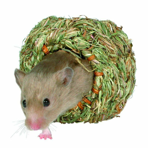 A fűből készült odú emészthető, így a kisállat rágcsálhatja is. Ez nem csak szórakozást nyújt, de segít a fogai k