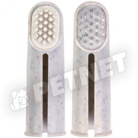Egy darab ujjra húzható fogkefe és egy darab masszírozó kefe, melyekkel könnyedén, biztosan tisztítható a kutya fogínye, fogsora, és fenntartható a megfelelő dentális higiénia.