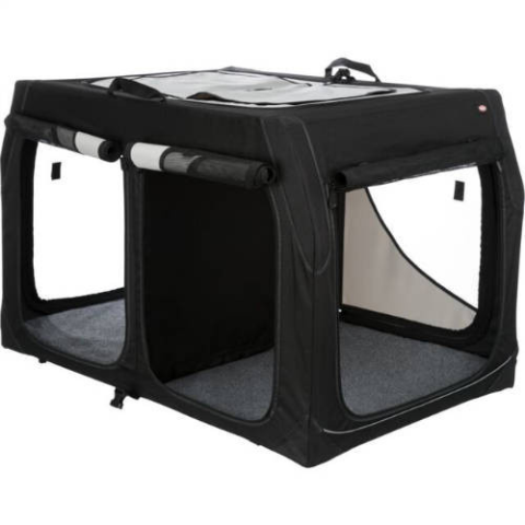 Trixie Vario Double Mobile Kennel - mobil kennel (S) 91x60x61/57cmstabil fémváz gyorsreteszelő mechanizmussalnégy oldalról nyithatófelső hálóbetét letakarhatókivehető zárt elválasztó tartozéka doboz alatt található tépőzár megakadályozza, hogy elcsússzonkültéren is használható fenéklapokkal és csapokkallökhárítóvédelmet tartalmaz