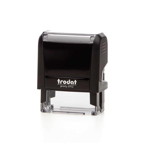 Bélyegző, TRODAT Printy 4912, fekete ház, fekete párnával önfestékező rendszer lenyomat méret: 47x18 mm max. 5 sor szöveg cserepárna: 6/4912 Gyártó/első EU forgalmazó elérhetősége: Trodat GmbH. A-4600 Wels / AUSTRIA Linzer str.156. info@trodat.net w