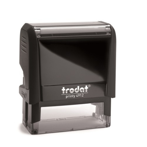 Bélyegzőház Trodat 4912 4.0 fekete, fekete párnával Megnevezés: Trodat 4912 bélyegző Bélyegzőházszín: fekete Lenyomatszín: fekete lenyomatméret: 47 × 18 mm javasolt sorok száma: 5 6/4912