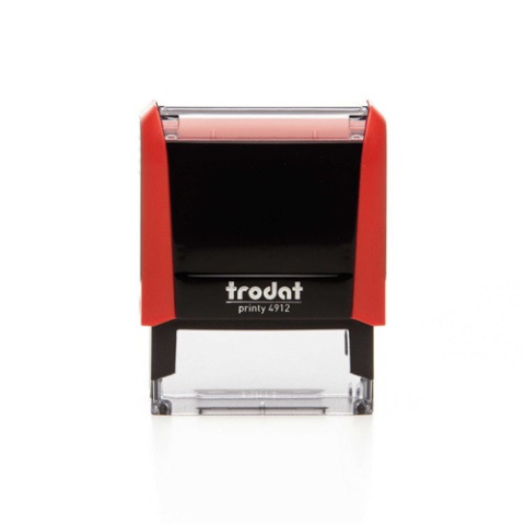 Bélyegzőház Trodat 4912 4.0 piros, kék párnával Megnevezés: Trodat 4912 bélyegző Bélyegzőházszín: piros Lenyomatszín: kék lenyomatméret: 47 × 18 mm javasolt sorok száma: 5 6/4912