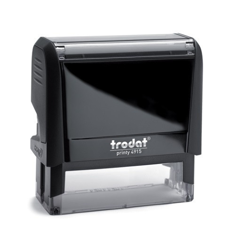 Bélyegzőház Trodat 4915 4.0 fekete, fekete párnával Megnevezés: Trodat 4915 bélyegző Bélyegzőházszín: fekete Lenyomatszín: fekete lenyomatméret: 70 × 25 mm javasolt sorok száma: 7 cserepárna: 6/4915