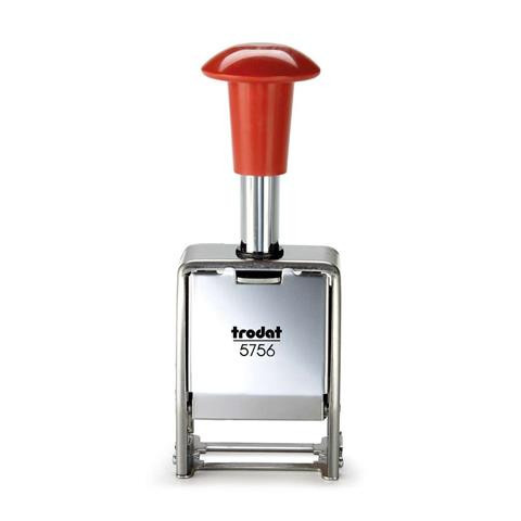 - iratok automata sorszámozására - 6 karakteres (Gothik Roman), 5,5 mm-es számokkal - az első 5 helyiértéken a nulla kiiktatható - 0,1,2,3,4,5,6,12 egyforma leütéssel - cserepárna: 6/5756 - olajos bázisú festékkel használandó Gyártó/első EU forg