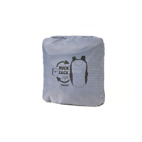Hátizsák, összehajtható, TROIKA Ruckzack Tervezett vagy spontán vásárlás esetén is kiváló választás ez a helytakarékos hajtogatott hátizsák. -súly: mindössze 115 gramm -nagy főrekesz cipzárral -belső rekesz tépőzárral -2 oldalzseb kulacsnak és esernyő
