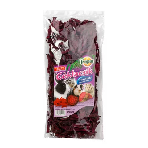 A Trópus Céklacsík falatok kitűnő minőségű rágcsálnivaló, mely céklacsíkokat kínál a rágcsálóknak. A cékla gazdag antioxidánsokban és vitaminokban, támogatva a kisállatok egészségét. Az ízletes falatok nemcsak finomak, hanem segítik a rágcsálók fogazatána