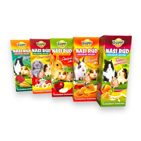 A Trópus Nasi rúd kiváló minőségű rágcsálófalat, melyet speciálisan rágcsálók számára fejlesztettek ki. A rúd kényelmes rágcsálási élményt nyújt, hozzájárul a fogak és fogíny egészségéhez. A Nasi rúd tápláló összetevőket tartalmaz, mint például magok és g