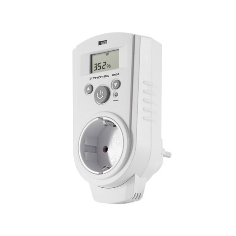 Konnektoros digitási higrosztát - Trotec BH 30 Párásitó és páramentesitő készülékek külső vezérléséhez. A Trotec BH 30 higrosztát lehetővé teszi, hogy a helyiség páratartalmát akár 1%-os pontossággal szabályozhassuk 20 - 90 %-os páratartalom között. A BH 30 vezérlő csatlakoztatható párásitó, léghűtő és páramentesitő készülékekhez. A konnektorba helyezett higrosztát automatikusan be- vagy kikapcsol. Könnyen üzembe helyezhető, intelligen