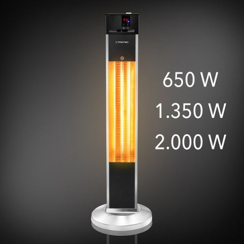 IRS 2000 E Terasz Hősugárzó Azonnali meleg - ideális ősszel és tavasszal Kellemes meleg ott, ahol éppen szükség van rá! Ha megszeretné meghosszabbitani a hangulatos, szép estéket a szabadban az IRS 2000 E infra hősugárzó erre tökéletesen alkalmas. A fekete-ezüst szinű, modern megjelenésű infra hősugárzó 3 fokozatban (650 W - 1350 W - 2000 W) állitható fűtési teljesitménye lehetővé teszi, hogy mindig az igényeknek megfelelő fűtési kapacitást vá