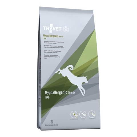 Hypoallergenic Horse (HPD) Dog Milyen esetekben ajánlott? Táplálék allergia vagy táplálék érzékenység (intolerancia) esetén Eliminációs diétához Egészséges felnőtt és kölyök kutyáknak (kivéve: óriás testű fajták kölykei) A TROVET HYPOALLERGENIC DIET tápok kizárólag egyféle fehérje és egyféle szénhidrát összetevőt tartalmaznak, olyanokat, amelyek ritkán váltanak ki macskákban allergiás reakciót, ezért különösen alkalmasak táplálék allergiá