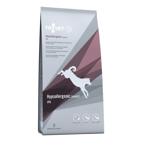 Hypoallergenic Insect (IPD) Dog A TROVET HYPOALLERGENIC DIET tápok kizárólag egyféle fehérje és egyféle szénhidrát összetevőt tartalmaznak, olyanokat, amelyek ritkán váltanak ki allergiás reakciót, ezért különösen alkalmasak táplálék allergiás és tápanyag érzékenységben szenvedő állatok táplálására. A hypoallergén tápok etetése során fokozatosan csökkennek az allergia által okozott bőrtünetek és emésztési zavarok. Alkalmazásuk legalább 3-8 h