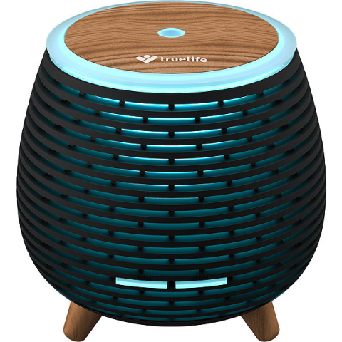 Aroma diffúzor - 140 ml-es tartály, funkciók: LED háttérvilágítás, párásító és automatikus kikapcsolás, 7 színű megvilágítás, 17 óra üzemidő, fekete színű, műanyag kivitel TrueLife AIR Diffuser D4 aroma diffúzorTermészetes frissesség minden térbenA TrueLife AIR Diffuser D4 aroma diffúzor illóolajok segítségével illatosítja a teret, és ultrahangos technológiával finom pá