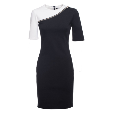 Márka: TrussardiTípus: ruhaNem: nőiZáródás: cipzárSzin: fekete, fehérAnyag: 68% viszkóz, 27% poliamid, 5% elasztánMosás: 30°CMinden termék új, eredeti márka az összes címkével ...