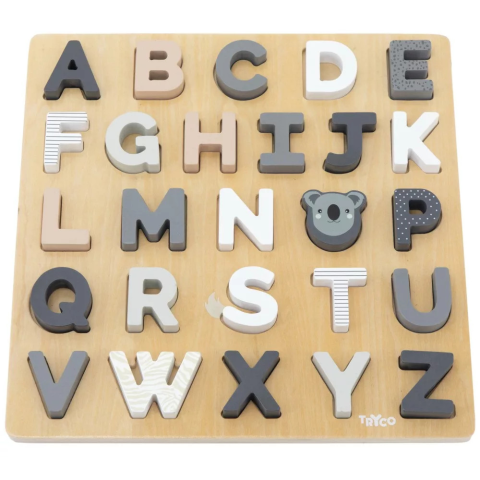 Tryco - fa ábécés kirakós nyomtatott nagy betűket tartlmaz. Segít a gyerekeknek a betűk világát megismertni és közben fejleszti a szem-kéz koordinációját, és a finommotorikáját a betűk vissza helyezésével!Anyaga: fa26 db betűToxikus anyagot nem tartalmaz