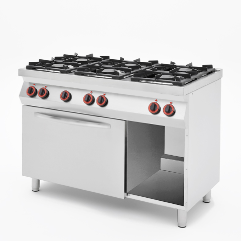 - 6 db nagy hőteljesítményű égőfej, rozsdamentes égőtálcák festett öntvény edénytartó rács, állítható lábakon. - Sütő hőmérséklet: 50 - 300°C - Égőfej: 28,5 kW (3x3,5 + 3×6 kW) - Sütő: 3 Kw - Sütő kapacitás: 4×GN1/1 - Teljesítmény: 31 kW - Sütő méret: 680×360×340h mm - Hálózati feszültség: 400V/3N/50Hz - Méret: 1200x700x900h mm - Súly: 105 kg