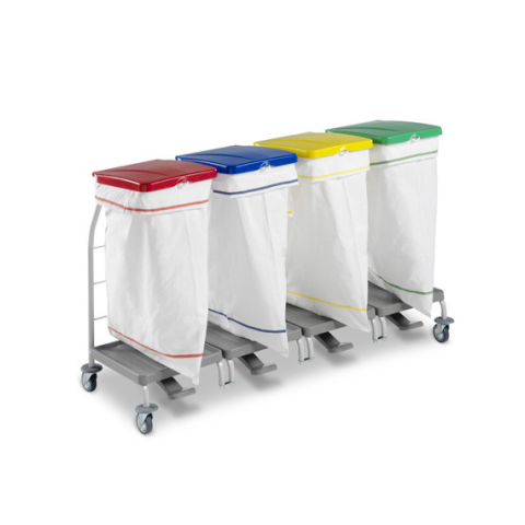 DUST négyes szennyestartó. Piros-kék-sárga-zöld fedéllel, rilsan bevonattal, pedálos. Mérete: 146x48,2x95 cm. 4x70 literes.