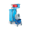 Elvis ET 1 krómozott, fémvázas szervizkocsi. TEC préssel. 2 darab 15 literes tartállyal, különböző színekben a különböző tisztítószerek tárolására. Mérete: 45x80x120 cm.