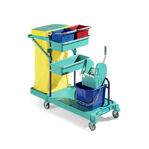 Green 20 szervizkocsi a közepes és nagy területek tisztítására. Kétféle vázzal kapható, rozsdamentes illetve rilsan. Mérete: 54,5x123x107 cm. Kerékátmérő: 100 mm. 15 literes felmosóvödörrel.