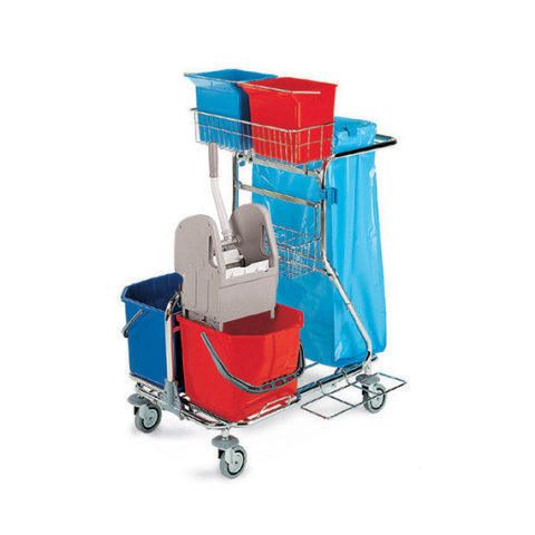 Modular 112 fémvázas szervizkocsi . 2x15 literes felmosóvödörrel, préssel. Mérete: 52x84x107 cm.