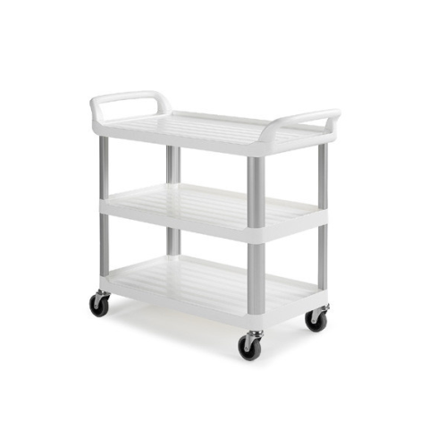 Shelf kiszolgálókocsi 3 részes, fehér. Alumínium tartókkal.