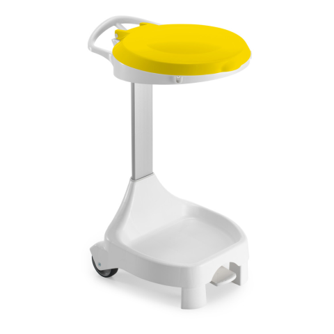 SMILE W-70 120 literes kerekes, pedálos szemetes. Fehér és sárga színben. Mérete: 50x64x99 cm.