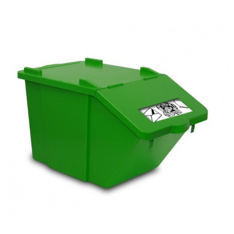1db Split szelektív hulladéktároló, zöld. Egymásra helyezhető rekeszek, tematikus matricákkal. Többféle színben: kék, piros, zöld, sárga, szürke. Mérete: 57x32x32 cm. Könnyen takarítható és üríthető. • A konténerek egymásra helyezhetők. • Műanyag