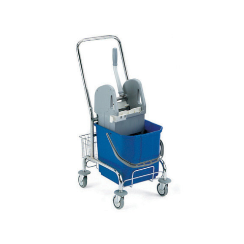 Sting fém felmosókocsi. Egyvödrös, 25 literes. Tolókarral, kosárral. Mérete: 40x58x93 cm.