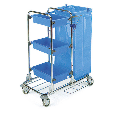 Tecno 80 fémvázas szervizkocsi . 120 literes szemeteszsáktartóval. Mérete: 57x83x105 cm.