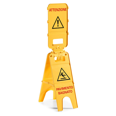 Jelzőtábla-csúszós padló -Olasz nyelvű felirattal -Több nyelvű felirattal is elérhető (ÉRDEKLŐDJÖN!) -Csúszós padló jelzésére alkalmas Mérete: 50x22,7x107 cm.