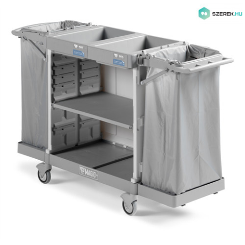 A TTS Szobalánykocsi Magic Hotel 890B egy alapváltozatú hotelkocsi, amely rendelkezik hátsó panelekkel és összecsukható tárolóval. Ez a többcélú polipropilén kocsi moduláris és testreszabható, hogy minden takarítási igényt kielégítsen.Ideális közepes-nagy