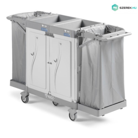 A TTS Szobalánykocsi Magic Hotel 890S egy zárt tárolóterülettel rendelkező, biztonságos verziójú szállodai kocsi. Ideális a takarítási műveletek megkönnyítéséhez.Tulajdonságok: Moduláris és testreszabható: A többfunkciós polipropilén kocsi minden takarítá