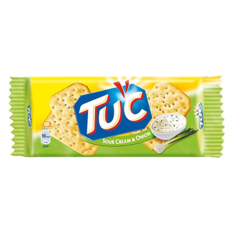 Keksz TUC hagymás-tejfölös 100 g Kemencében sütött tejfölös-hagymás ízű kréker. 100g. A csomagolás 4 x 25 g-ot tartalmaz. Összetevők: Összetevők Búzaliszt, Napraforgóolaj 22%, Glükózszirup, Térfogatnövelő szerek (ammónium-karbonátok, nátrium-karboná