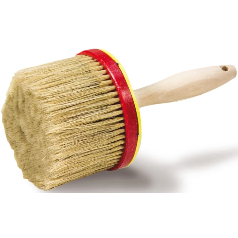 Kiváló fehér sörtekeverékből, műanyag testtel, natúr fa nyéllel készül. Kiemelkedő festéktartó és felvevő képeséggel minden falfestő munkához ajánlott.