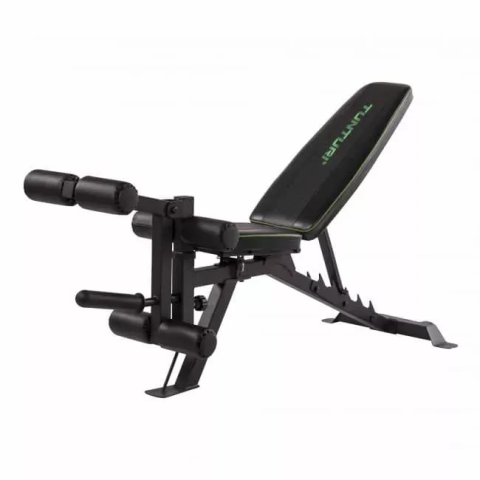 A Tunturi UB60 állítható pad robusztus megjelenésű, a fekete acél váza porszórt és a komfortos párnák zöld színűek a szélén, kiváló ár-érték arány párosul hozzá. A háttámlája 6 különböző fokozatban dönthető, a függőlegestől egészen a negatívig, ezért tökéletes segédeszköz súlyzós gyakorlatok végzéséhez. Az ülése is állítható. A Tunturi UB60 beépített lábfejlesztővel rendelkezik, amely több magasságban állítható. A görgőpárnák v