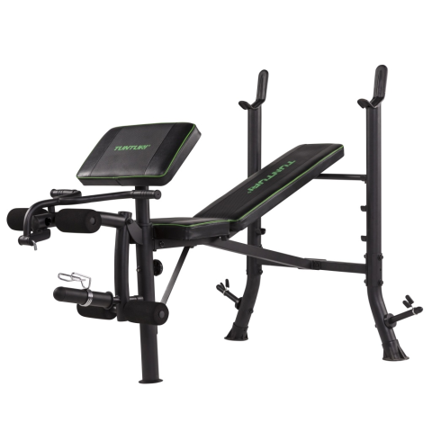 A Tunturi WB40 súlyzóspad erős vázszerkezettel, s a hagyományos fekvenyomó funkción kívül kétfunkciós lábgéppel és bicepszpaddal is rendelkezik. A négy pozícióban állítható háttámla akár negatív dőlésszögű fekvenyomásra is lehetőséget biztosít..