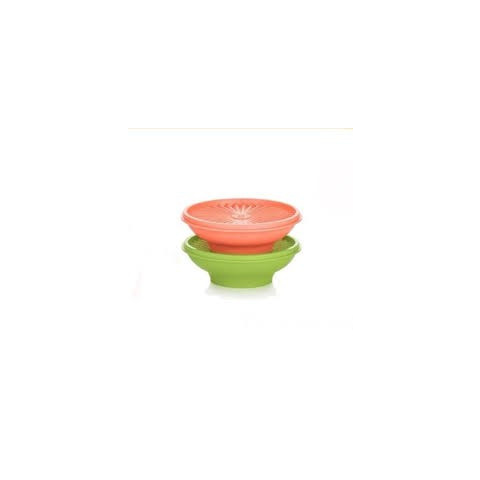Termékjellemzők: - Tupperware Napsugár tál szett - 2 db tál - Színe: Narancs és zöld - Térfogat: 2 x 400 ml - Méret: átmérő 16,5 cm, magasság 6 cm - Ezek az edények lég- és cseppmentesen zárható fedővel rendelkeznek. - Elegáns formájú, sokféleképpen felh