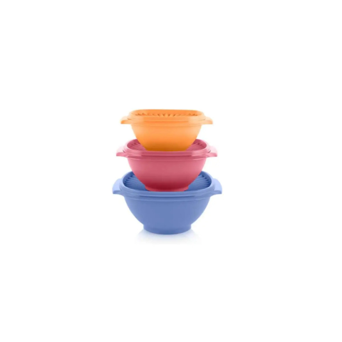 A szett 3 db terméket tartalmaz. Méretek: 16x8x19 cm 860 ml 19x9x22 cm 1,3 L 21x10x24 1,9 L Tupperware Napsugár Tál szett (3 db) A funkcionalitás és az esztétika összefonódik, hogy egyedülálló élményt nyújtson az ételek tárolásában és fe