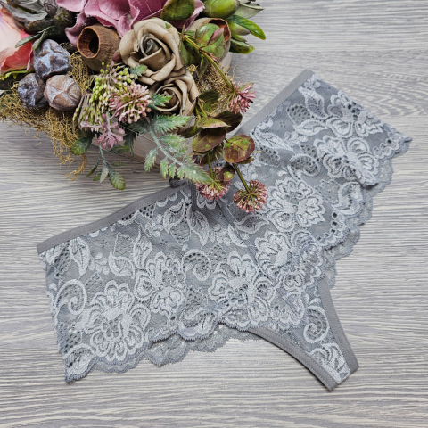 1 kép Turbó Széles oldalú csipkés tanga XL, Világos szürke
