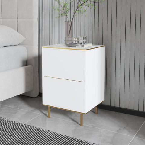 Bemutatjuk gyönyörű és sokoldalú éjjeliszekrényünket, amely a hálószoba elengedhetetlen kiegészítője, amely az elegancia és a kifinomultság érzetét kelti. A legnagyobb gondossággal és a részletekre való odafigyeléssel készült éjjeliszekrényt úgy tervezték, hogy fokozza a helyiség hangulatát, miközben praktikus tárolási megoldásokat kínál. Felemeli hálószobáját időtlen szépségévelA fehér márvány és az arany szín lenyűgöző kombinációjával ez a