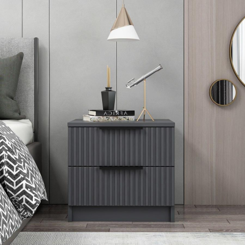 Bemutatjuk lenyűgöző Antracit Éjjeli Szekrényünket, amely elengedhetetlen darab a hálószobájában, és eleganciát, valamint funkcionalitást ad a térhez. Ez az éjjeli szekrény nem csupán egy bútordarab, hanem a stílus és kifinomultság kifejezése, amely emeli a szoba megjelenését.Elegáns dizájn a stílusos hálószobáhozAz éjjeli szekrény sima antracit színe könnyedén illeszkedik bármilyen dekorációs stílushoz, legyen az modern, hagyományos vagy eklektikus. A let