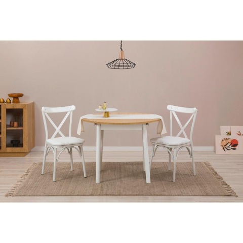 Alakítsa át étkezőjét egy stílusos és funkcionális térséggé az Extendable Dining Table & Chairs Set segítségével. Ez a 3 darabos szett tökéletes azok számára, akik szeretnek vendégül látni másokat, vagy együtt élvezni a családi étkezéseket.Elegáns DesignA szett letisztult fehér és tölgy színei egy csipetnyi kifinomultságot adnak bármely étkezőhöz. Az asztal és a székek fából készült lábai stabil és tartós alapot biztosítanak évekig tartó használa